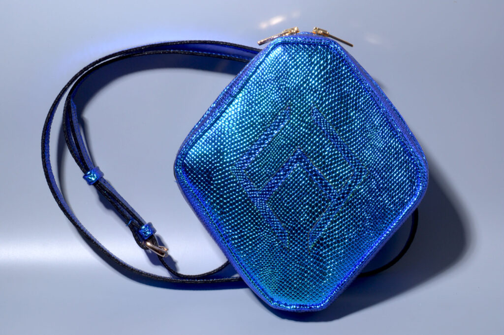 Crafted from two types of leather. Super strong leather and decorated with iridescent and cobra…