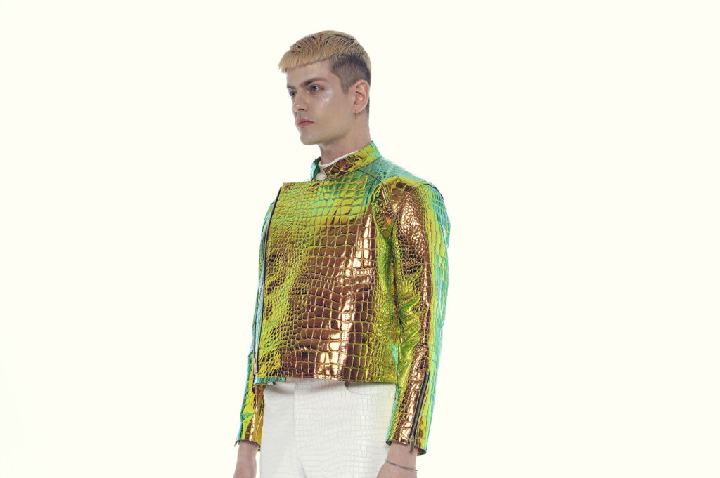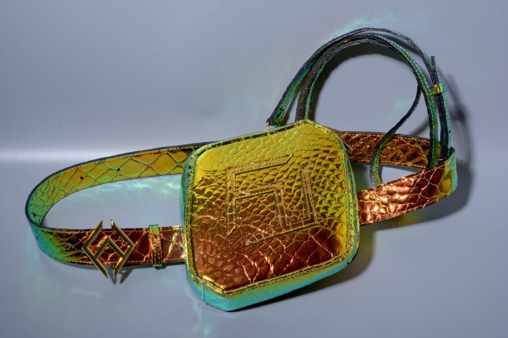 Crafted from two types of leather. Super strong leather and decorated with iridescent and crocodiles…
