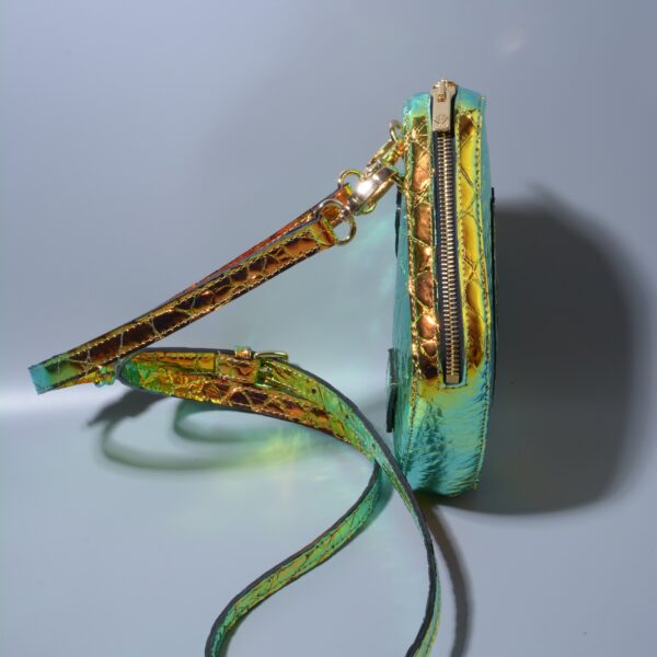 This bag is crafted from croc-effect embossed leather and adorned with laser cut logo. The design is completed by a detachable and adjustable belt and shoulder strap.
