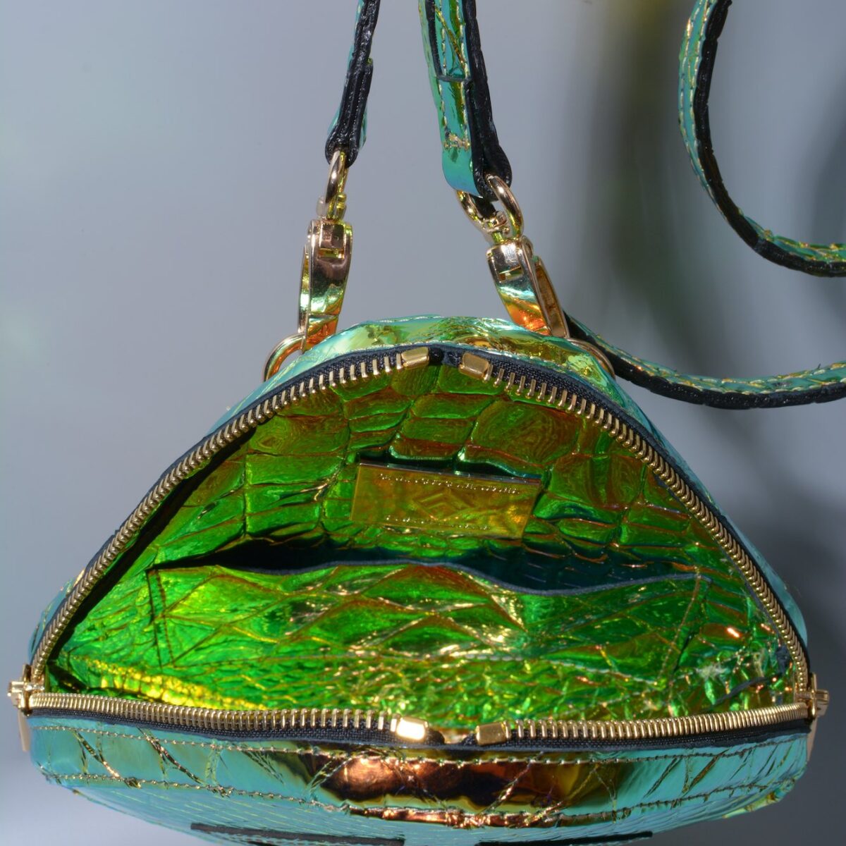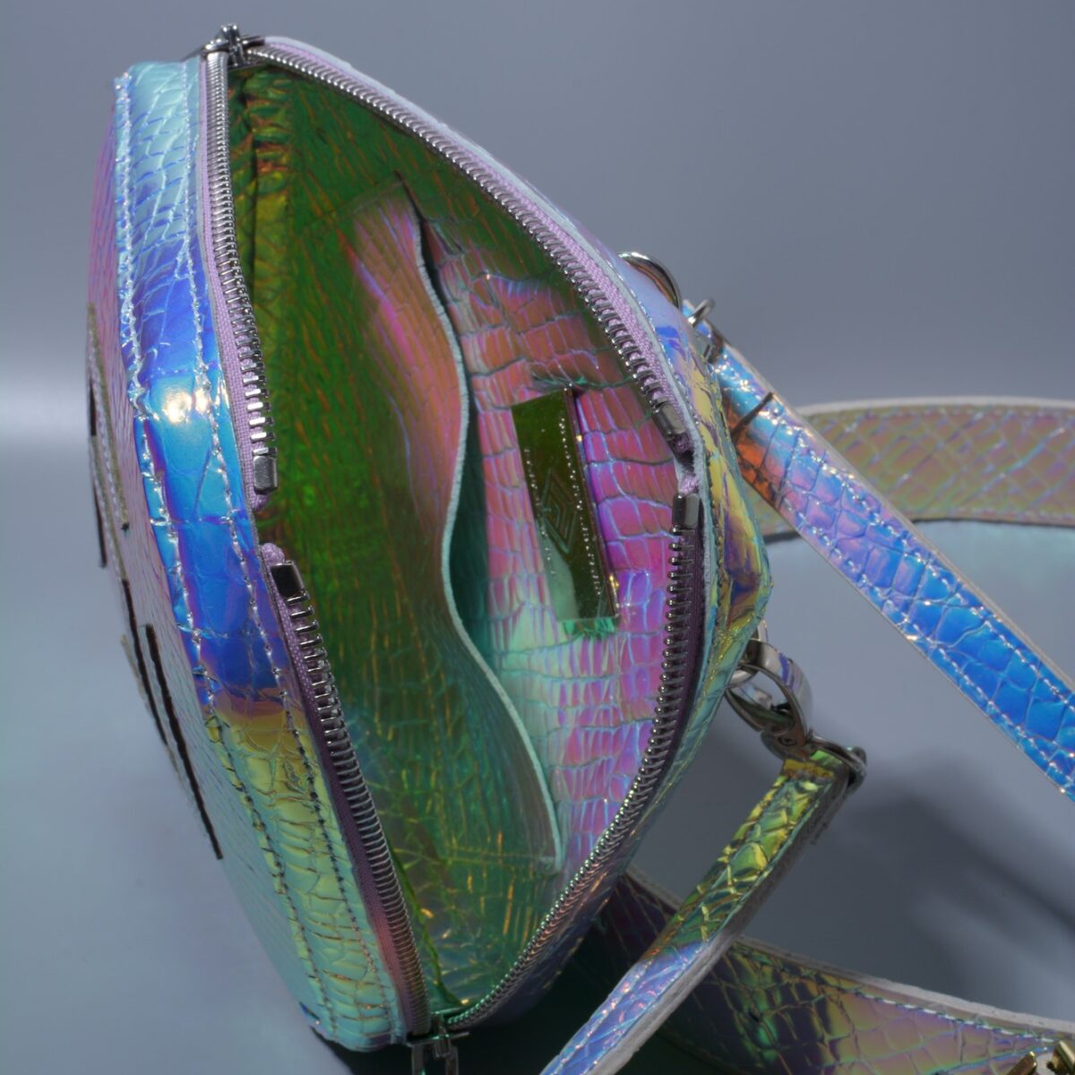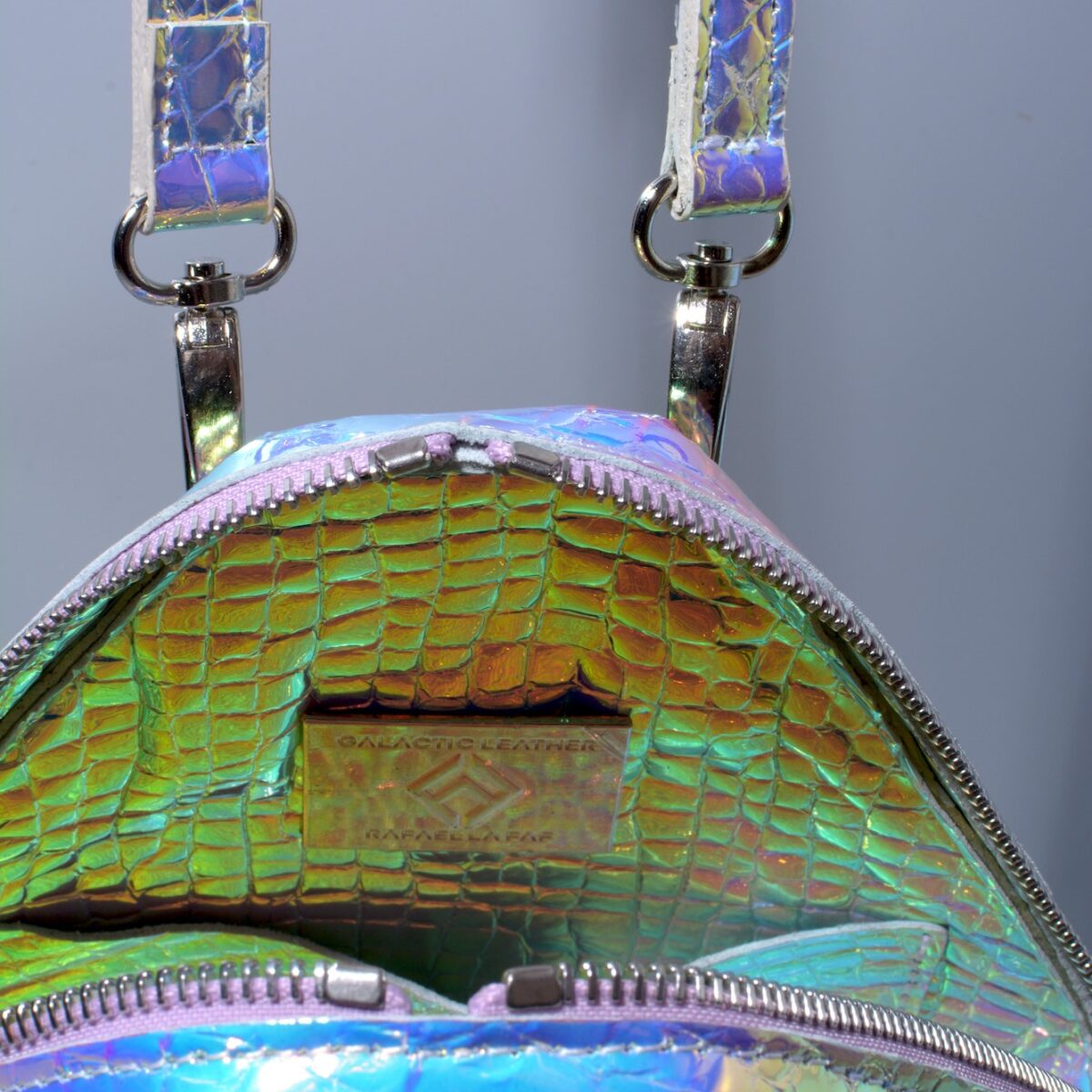 This bag you can wear in many ways, on belt or shoulder, both at once, which will create the unique La Faf style. Or create your own. An innovative solution is the use reflective leather as lining, which generate illusion of inner light.