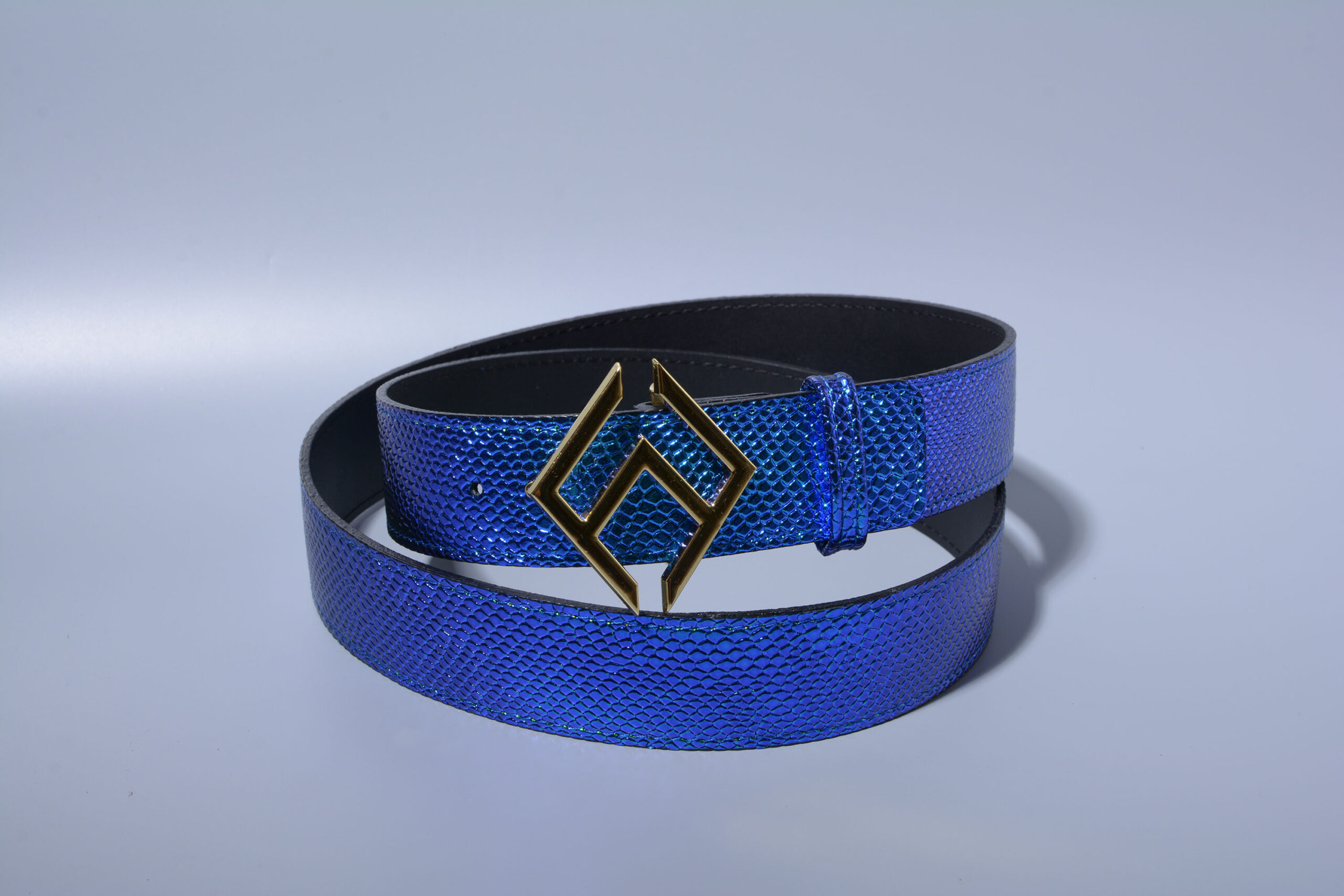 Crafted from two types of leather. Super strong leather and decorated with iridescent and cobra effect leather, This belt is embellished with the LA FAF buckle.