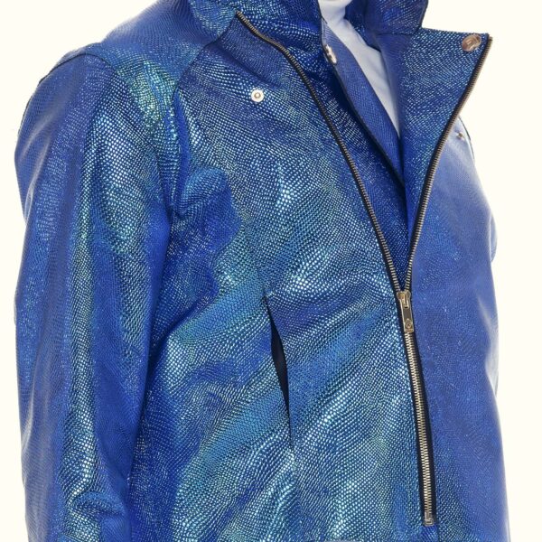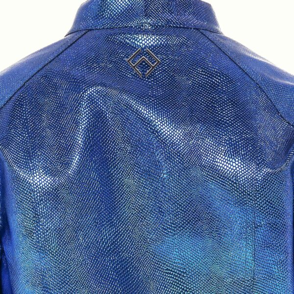 It will give you the authority of the vivid blue light of Neptune. Crafted from cobra effect leather with metalic finish. Signature hardwere at the back.