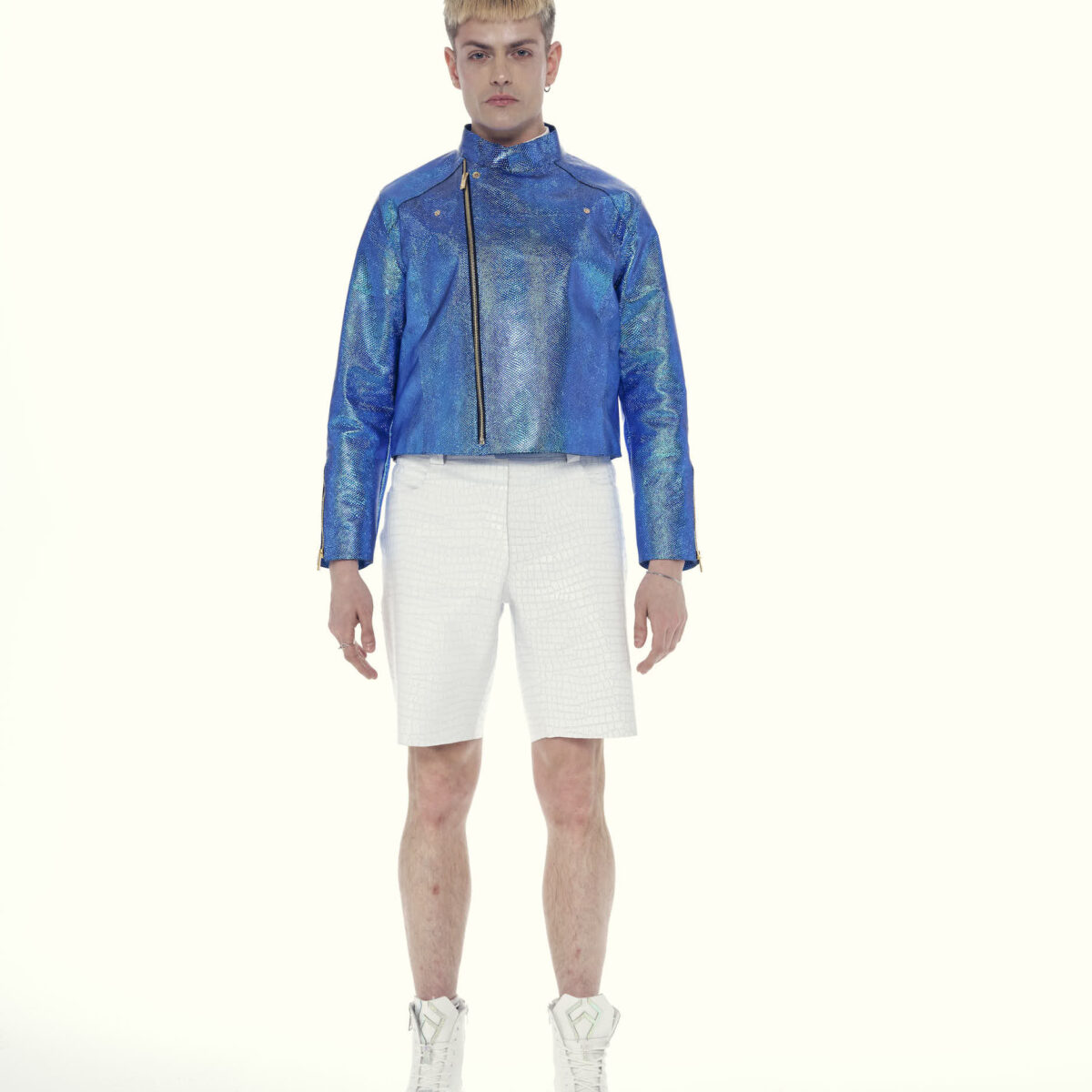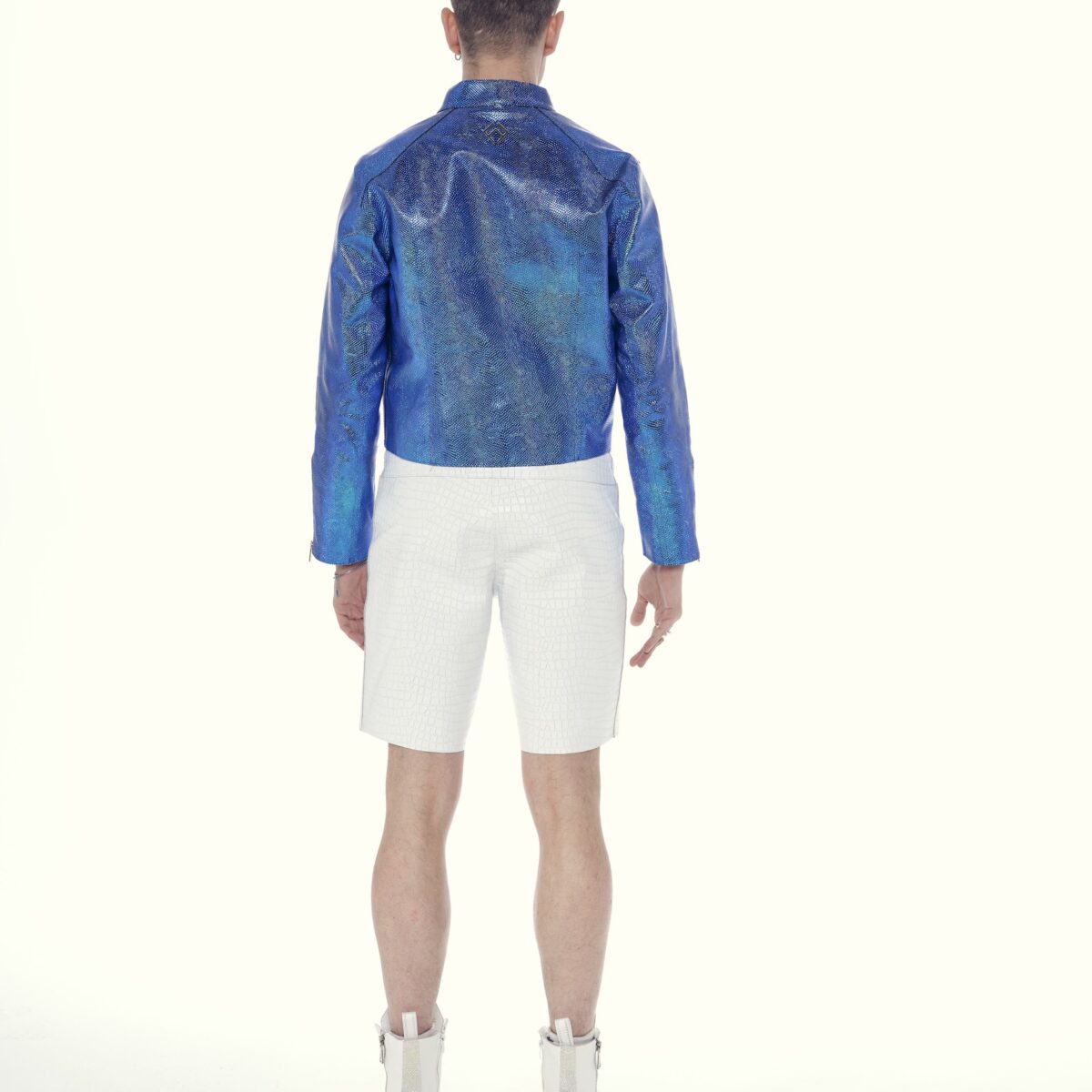 It will give you the authority of the vivid blue light of Neptune. Crafted from cobra effect leather with metalic finish. Signature hardwere at the back.